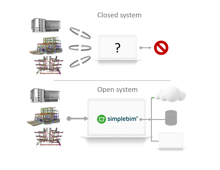 - Simplebim töötab iga tarkvaraga, mis toetab Open BIM-i, IFC-d või andmetabeleid.